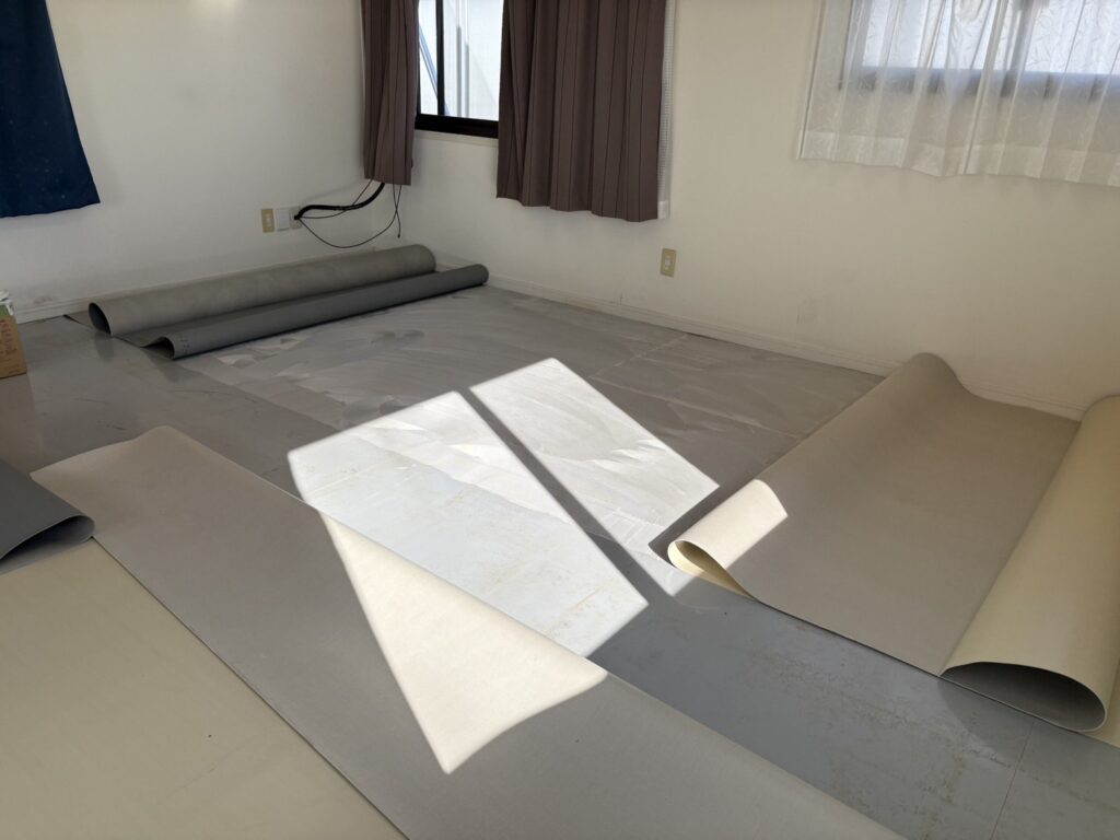 事務所内 床工事 2025年11月11日 施工事例 クロス 施工種別床張り替え エリア岐阜県羽島市 施工箇所床 施工概要事務所内の床工事をいたしました。 色味の違う長尺シートを使用して、飽きの来ないデザインに仕上がりました! 施工前写真 施工中写真 完成写真